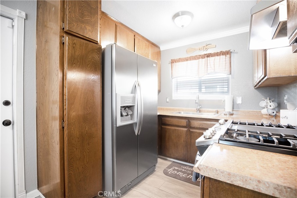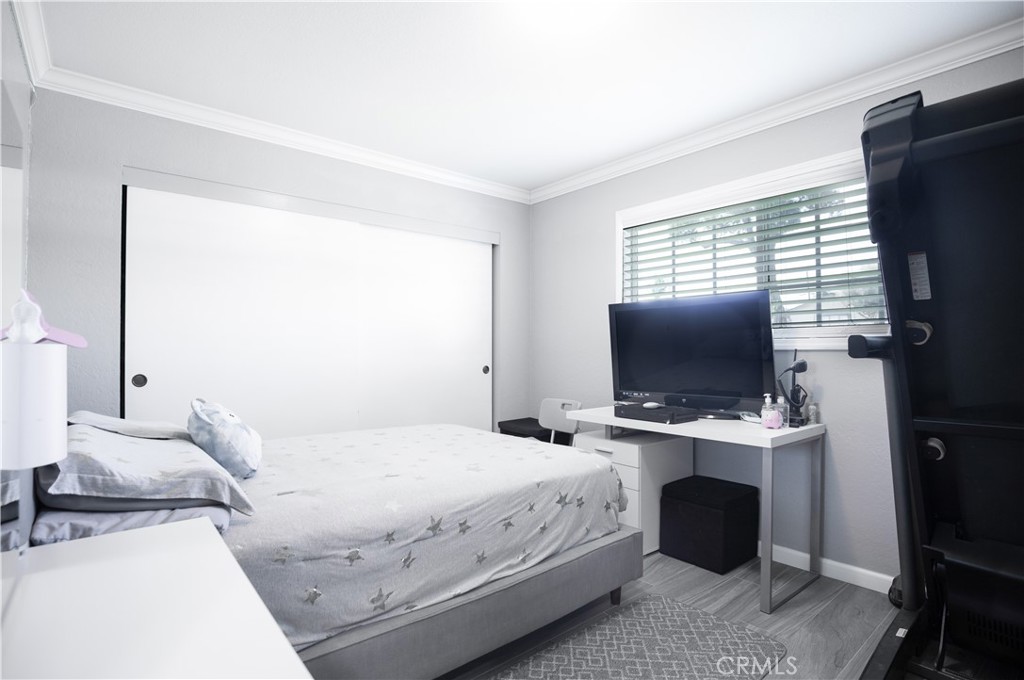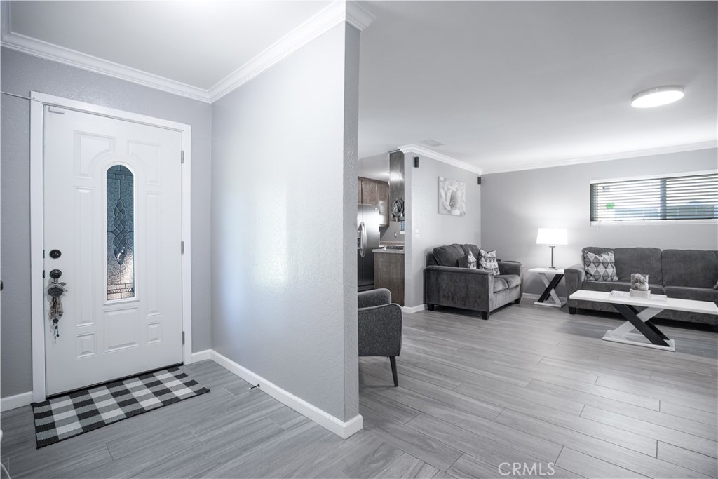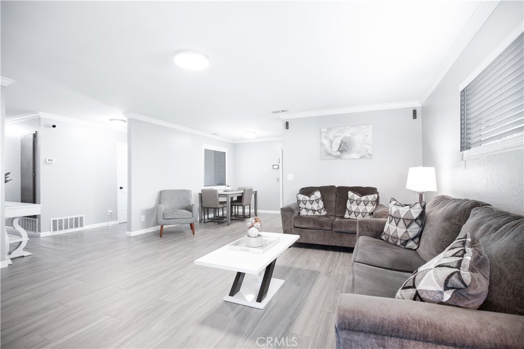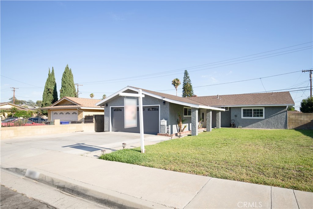 Welcome home to this beautiful one story with upgrades and renovations! This home features 3 bedrooms and 2 full baths. New flooring, crown molding, new sinks/vanity in bathrooms, new sliding door, windows, sink and disposal. New roof that was done about 5 years ago, new paint outside and inside the home. All the rooms have new doors. Garage door was also changed and is now electric with electric motor. Backyard was changed to all cement and has large patio cover. Amazing for get togethers or parties! Kitchen is great as is but also has great potential! New buyer could break wall down between kitchen and living room and add a kitchen island with more cabinets and make it an open floor plan. Near schools and shopping centers. This one won't last long!